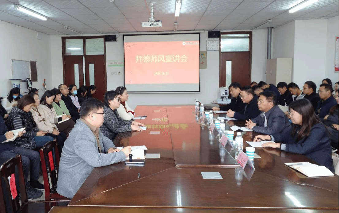 10月23日下午,学校师德宣讲团部分成员在教师工作部部长赵玉松的带领下,到药学院开展宣讲活动。药学院全体教职工参加活动,宣讲由药学院党委书记袁冬梅主持。